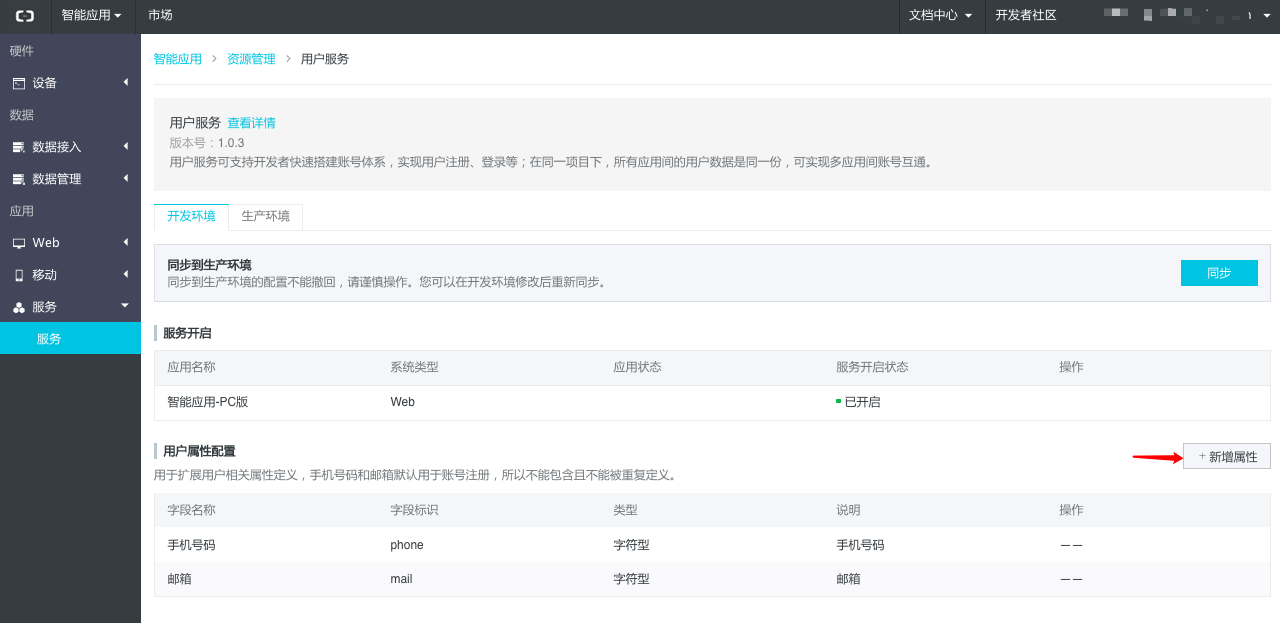 用户属性数据使用范围:用户属性配置后,会在该项目下生效,该项目下所有应用都可以使用。