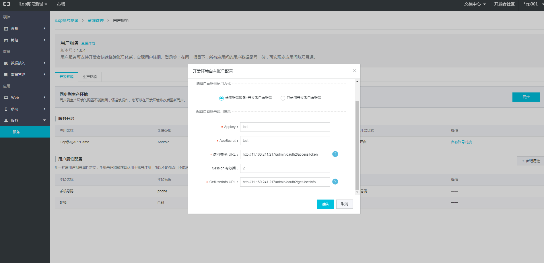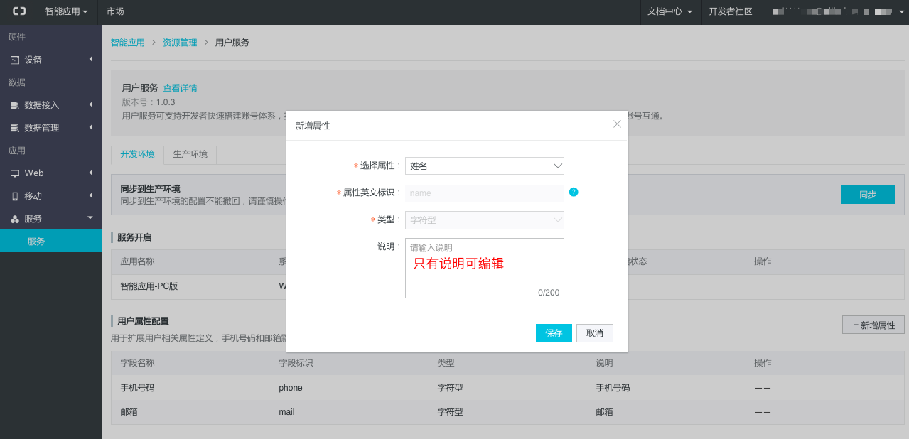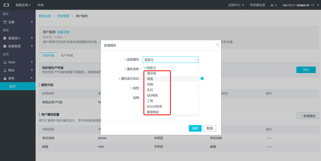用户属性配置用于开发者在使用本服务时,可以为自己的用户体系,配置出所需要的用户属性,该配置非必选。